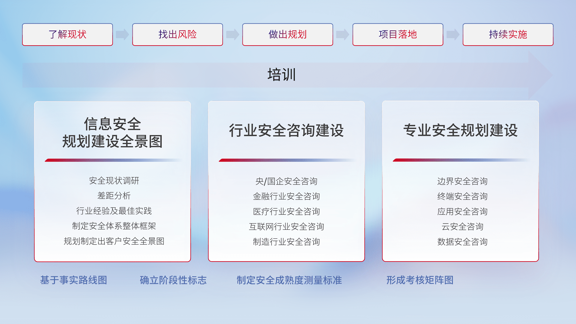 梳理客户信息安全现状调研、、、、差距分析结果,,,,结合行业先进经验及最佳实践,,,制订客户的信息安全管控体系总结架构,,,,最终形成一个完整的客户信息安全规划与建设的全景图。。。。