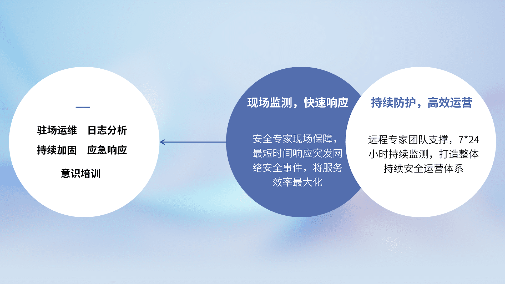 针对客户行业特性,,,,提供专属的一站式安全管理服务,,,帮助客户全面感知网络空间威胁,,通过安全专家的线上、、线下防护支持,,实现风险闭环,,,,将安全保障常态化,,为客户打造常态化安全运维运营服务。。。